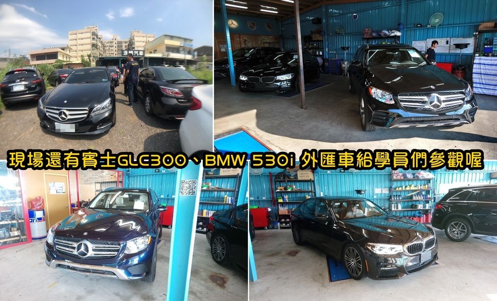 現場還有賓士GLC300.BMW 530i外匯車給學員們參觀喔。這些外匯車都是LA桃園車庫幫客戶從美國代辦回台灣的車輛,